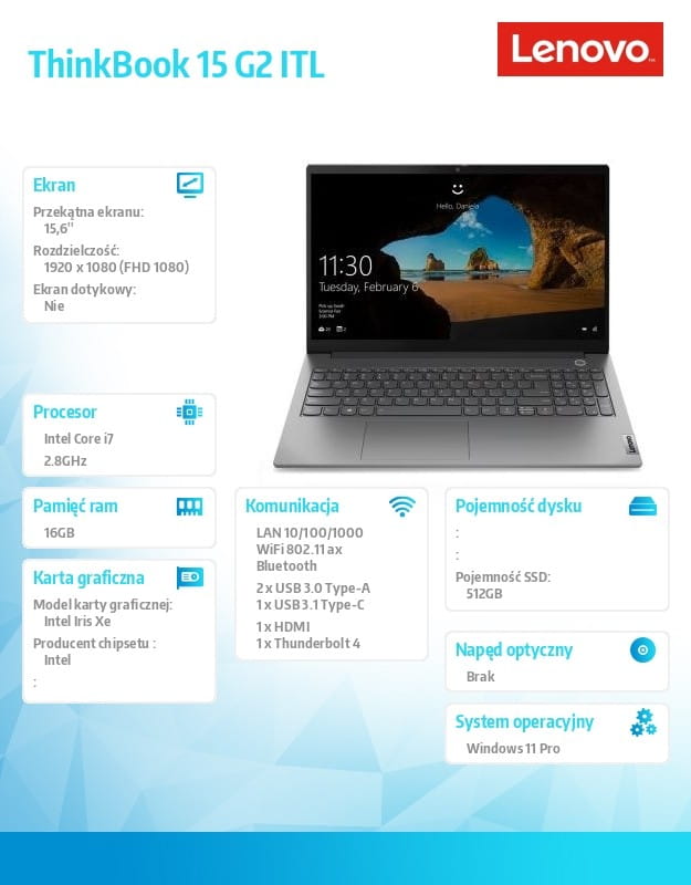 - Pozostałe informacje o procesorze: Intel Core i7-1165G7